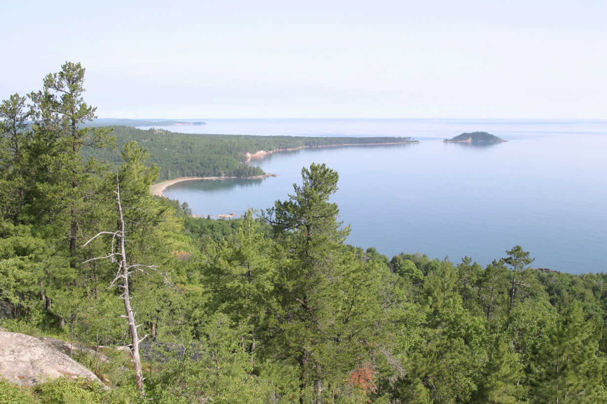 View south toward Marquette and Presque Isle from Sugarloaf Mountain. |