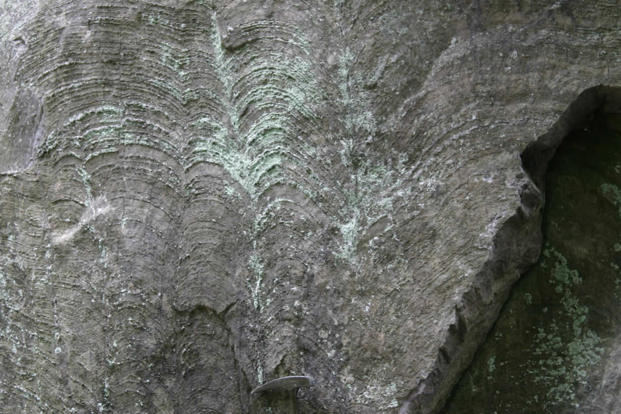 Harvey Quarry - north of quarry behind south end of road cut - exposures of stromatolites in kona dolomite. |