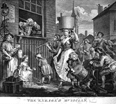 1a. William Hogarth's "Harlot's Progress" 1b. William Hogarth's "The Enraged Musician" |